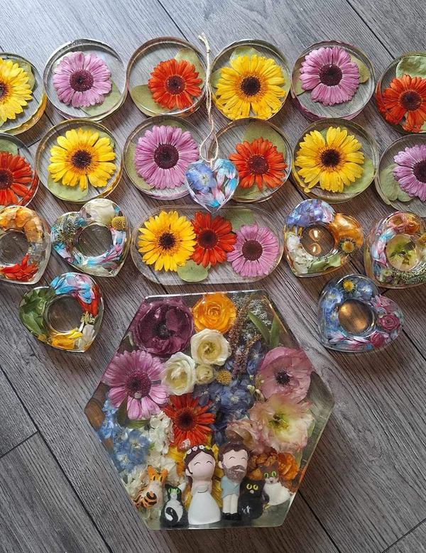 I am completely self taught at what I do and over my time running the business I have invested in a new workspace, various improvements in equipment and tried and tested a vast amount of materials in order to get to the level I am at now. All my products are resin based and designed by my creative eye! I have a large range of products and I am always developing something new in the background.