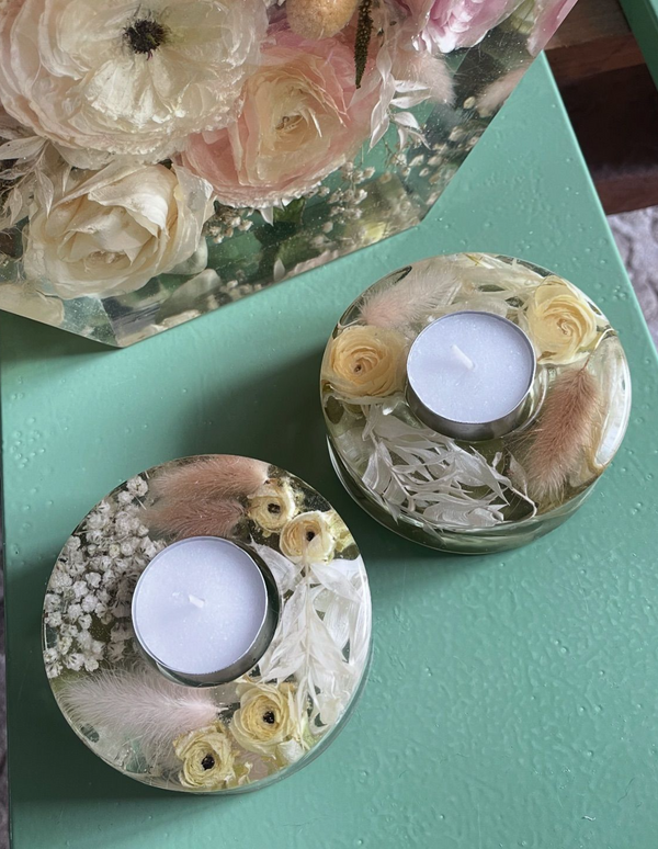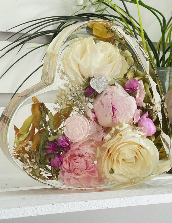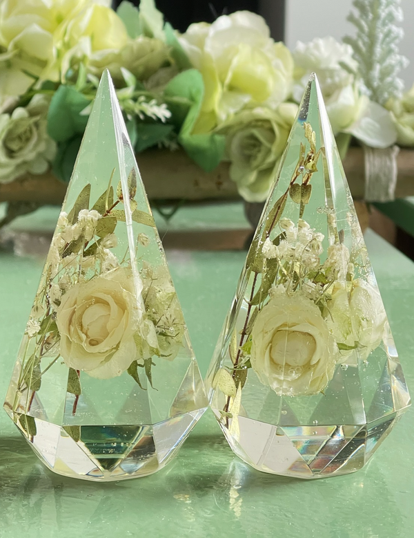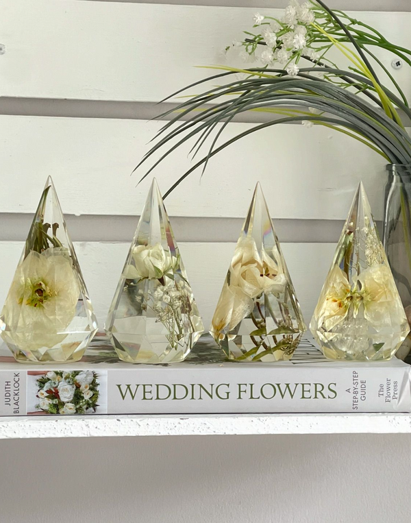 Flower preservation is a two-fold process. You can provide your flowers either already dried, or the most popular option is to send them whilst still nice and fresh for me to preserve them before I can create your items. All flowers must be completely free from moisture before I can set them in resin for you. The drying process is usually covered by the £20 booking fee (If sending dried flowers this is deducted from your order) I have a number of years experience in drying and the use various different methods found to be the best to retain colour and shape.