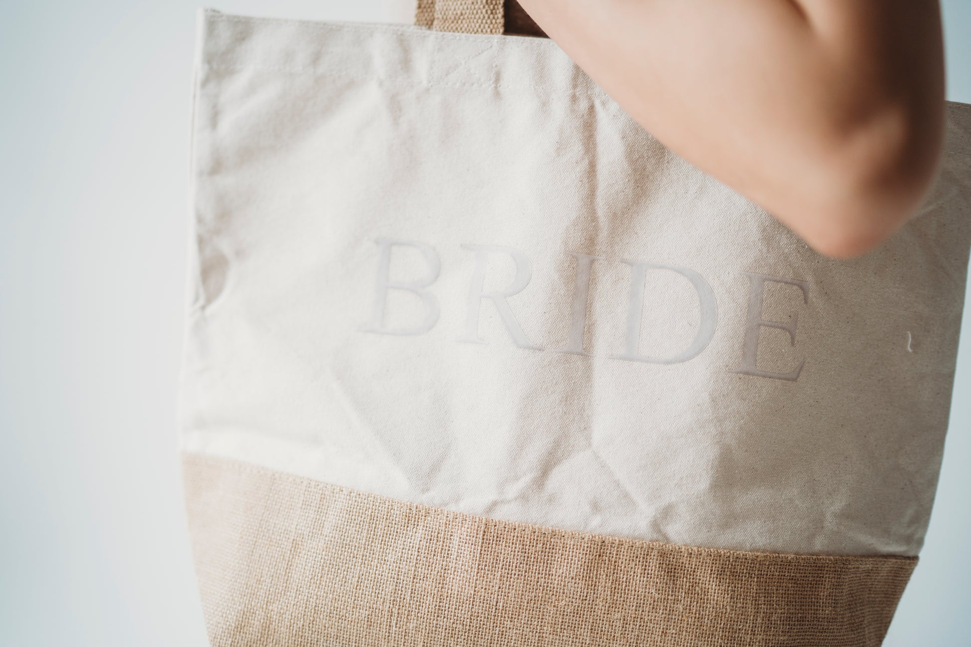 Our Jute-Based Bridal Party Bags are the perfect blend of style and practicality for your wedding journey. These chic bags feature a durable jute base and a soft cotton top, combining both rustic charm and elegant design and with natural-coloured lettering, offering a choice of titles including "Bride," "Bridesmaid," "Maid of Honour," "Mother of the Bride," "Fiancée," or "Wifey."